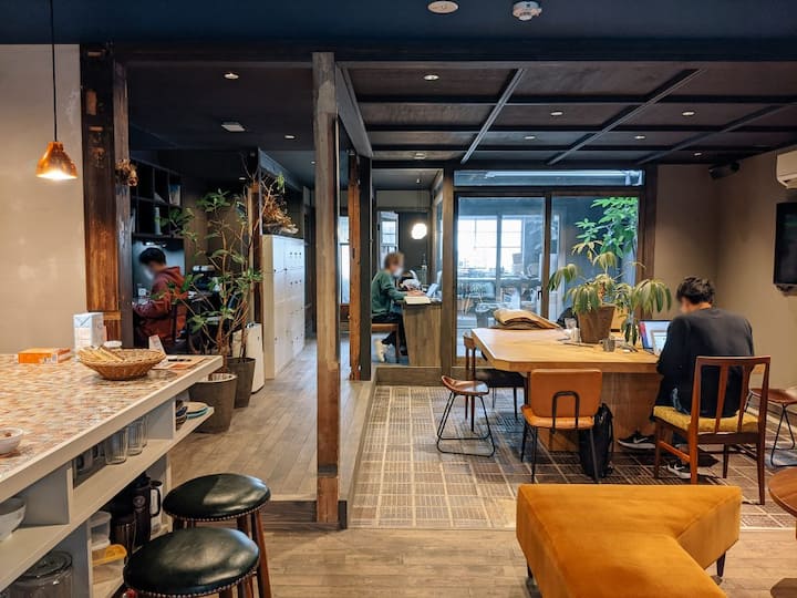 Quartiere di Shimogyō (Kyoto), Giappone. Stanza privata in ostello