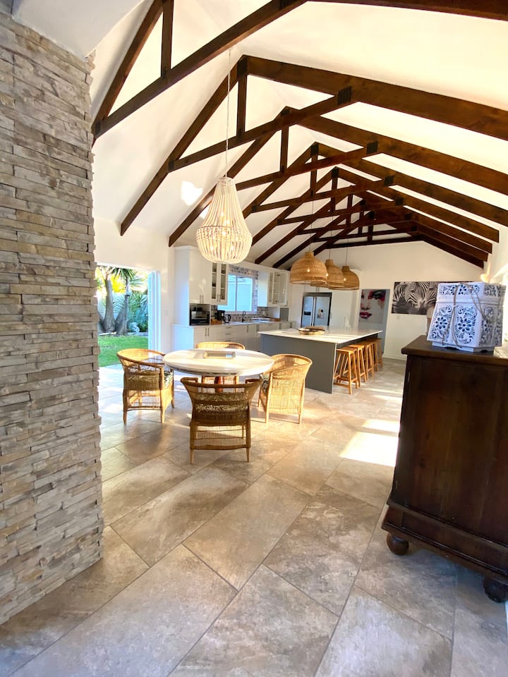 Questa casa ha tutto. La casa è a pianta aperta e molto funzionale. Splendidi soffitti alti ovunque. Tutte le porte conducono alla piscina, offrendo uno spazio abitativo interno ed esterno molto speciale e suggestivo.