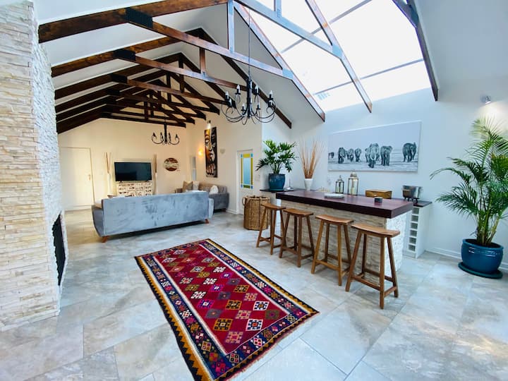 Lo spazio dispone di un bar e di un'area intrattenimento, di un garage per due auto più un parcheggio all'esterno, di una cucina nuova di zecca, di un'area braai esterna coperta con zona relax all'aperto, di bagni di lusso con docce esterne, di un giardino, di Netflix e di wifi gratuito, oltre a un condizionatore che raffredda e riscalda.