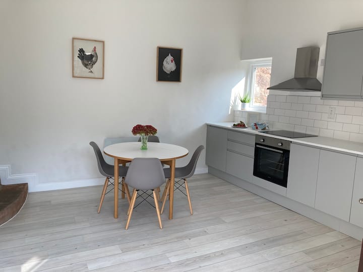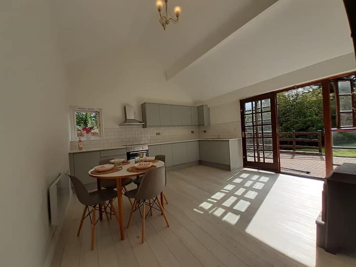 Fienile ristrutturato con soffitti a volta, luminosa e ariosa, con vista