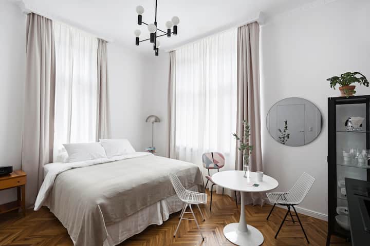 Nel vecchio quartiere Wesoła di Cracovia, nel comfort di una casa storica, abbiamo creato un luogo gioioso dove ti sentirai a casa. Gli interni moderni con un raffinato fascino vintage, un buon caffè e un'atmosfera rilassata offrono la nostra alternativa al trambusto del turismo a Cracovia. Goditi l'atmosfera unica dei nostri appartamenti boutique e scopri la città rinfrescata!