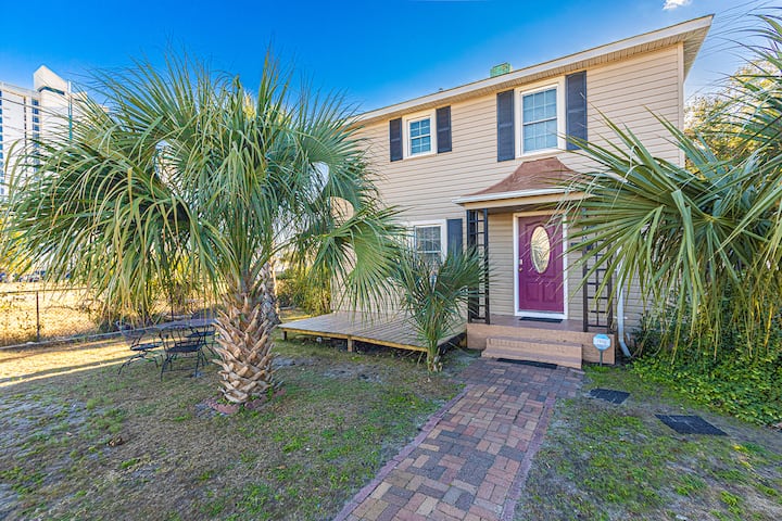 Con questo alloggio in centro, la tua famiglia sarà vicina a tutto, a soli 2 minuti a piedi dalla spiaggia e dal famoso Myrtle Beach Boardwalk! Completo con vista sull'oceano; 2 letti matrimoniali grandi su 7 letti in totale; enorme cortile privato recintato con focolare e barbecue; una terrazza sul retro con vista sull'oceano; una terrazza/patio sul retro; lettini e mobili da esterno; giochi da cortile; smart TV; un sacco di parcheggio; e molto altro!