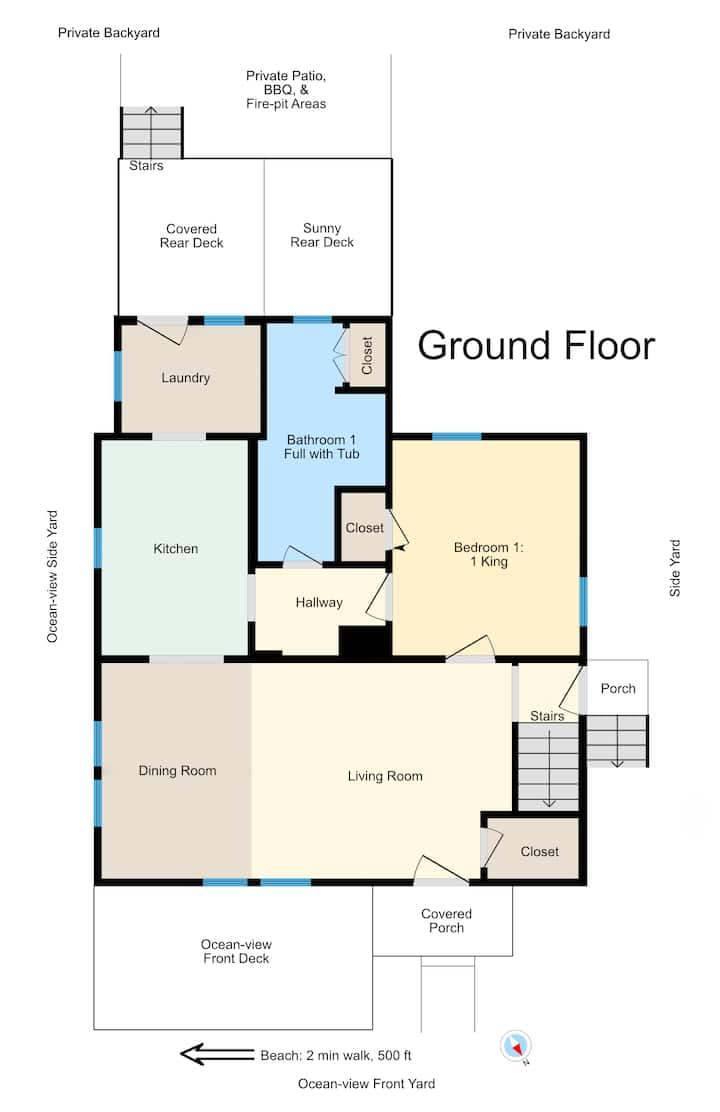 Questa proprietà spettacolare è il più centrale possibile per una casa privata unifamiliare che include un enorme cortile privato, 2 enormi ponti/patii, focolare, barbecue e vista sull'oceano! In quanto tale, questa proprietà è una scoperta rara e prenota rapidamente!