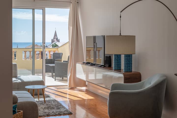 Terrazza all'ultimo piano e ampi balconi nel centro di Funchal
