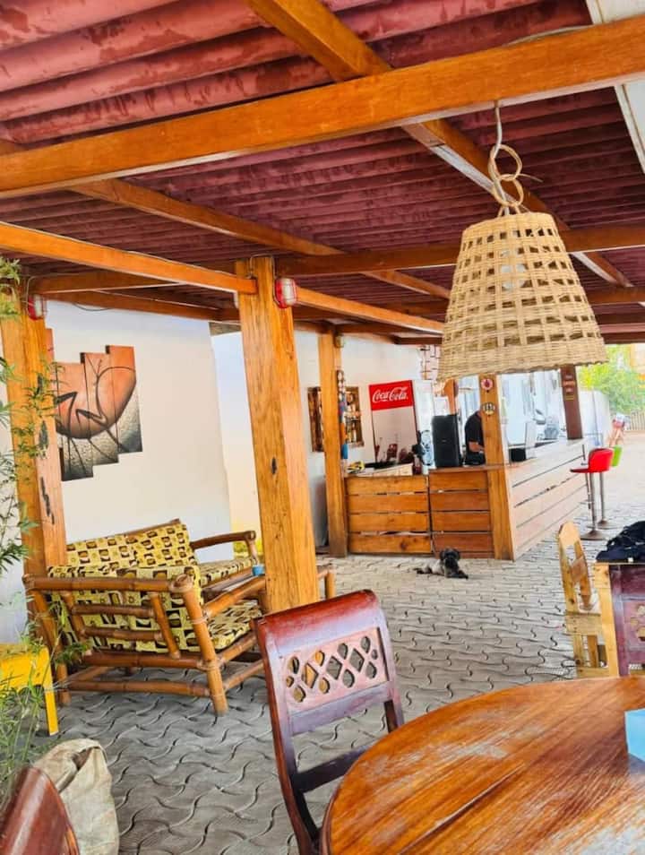 Il nostro monolocale arredato ad Assouindé vi offre un soggiorno confortevole a 2 minuti dalla spiaggia. Dotato di una camera da letto climatizzata, TV con Canal+, angolo cottura attrezzato (frigorifero, forno a microonde), combina comfort, convivialità e praticità. Godetevi un ampio giardino e un ristorante con piscina per rilassarvi, in un ambiente tranquillo e verde. Ideale per vacanze, seminari o eventi, il nostro alloggio offre un servizio di pulizia giornaliero per un comfort ottimale.