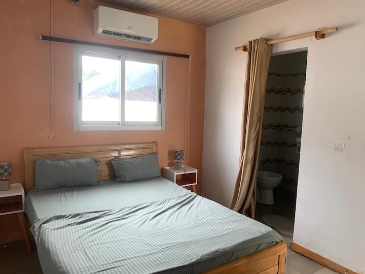 Benvenuti nel nostro monolocale arredato ad Assouindé, progettato per offrire comfort e serenità ai nostri viaggiatori. Ecco una panoramica dei diversi spazi: