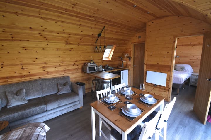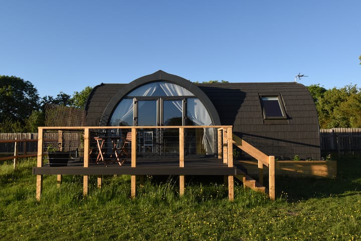 Situato in 11 acri della tenuta vinicola, siamo un piccolo sito con quattro pod per glamping in totale. Questo pod con 2 camere da letto è stato arredato con biancheria da letto di alta qualità, mobili e dettagli di design che si adattano allo stile della proprietà. L'interno bianco offre una finitura moderna e pulita.