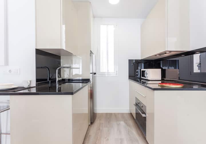 Accoglie comodamente sei persone ed è l'opzione perfetta per chi cerca un appartamento centrale senza rinunciare al design e alla funzionalità. È stato arredato con mobili accuratamente selezionati e materiali di alta qualità.
