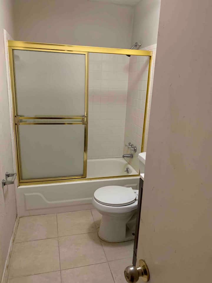 This place has a half bathroom that’s connected to your room.