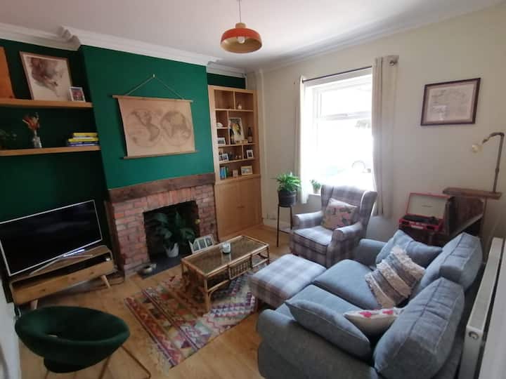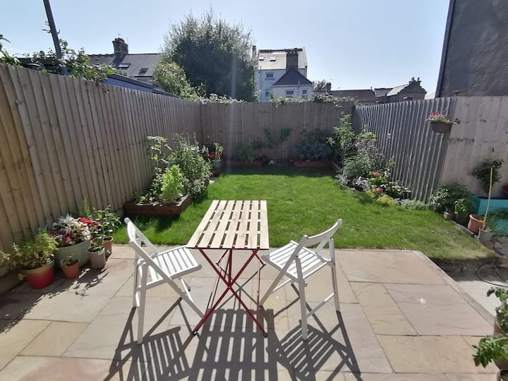 Proprietà allegra con 2 camere da letto, ampio giardino mozzafiato e parcheggio gratuito in strada
