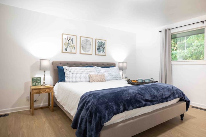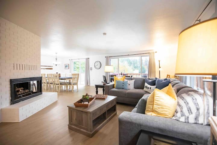 N2 Lake House offre servizi premurosi in un ambiente moderno e ispirato alla natura. 3200 piedi quadrati per il tuo divertimento! Al piano superiore ci sono 3 camere da letto e 2 bagni. Una spaziosa stanza aperta ospita il soggiorno e la sala da pranzo, insieme a un camino per rendere l'atmosfera ancora più accogliente. Al piano inferiore si trova la sala teatro, la sala giochi, una cucina, un bagno e altre opzioni per dormire. C'è un altro camino per riscaldare l'ambiente! Forniamo popcorn per la serata cinema e un kit s'more per il focolare. Se ha bisogno di qualcosa in particolare per il suo soggiorno, ce lo comunichi e ci occuperemo di tutto.