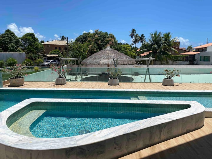 Casa sulla spiaggia di Sonho Verde con piscina e sauna.