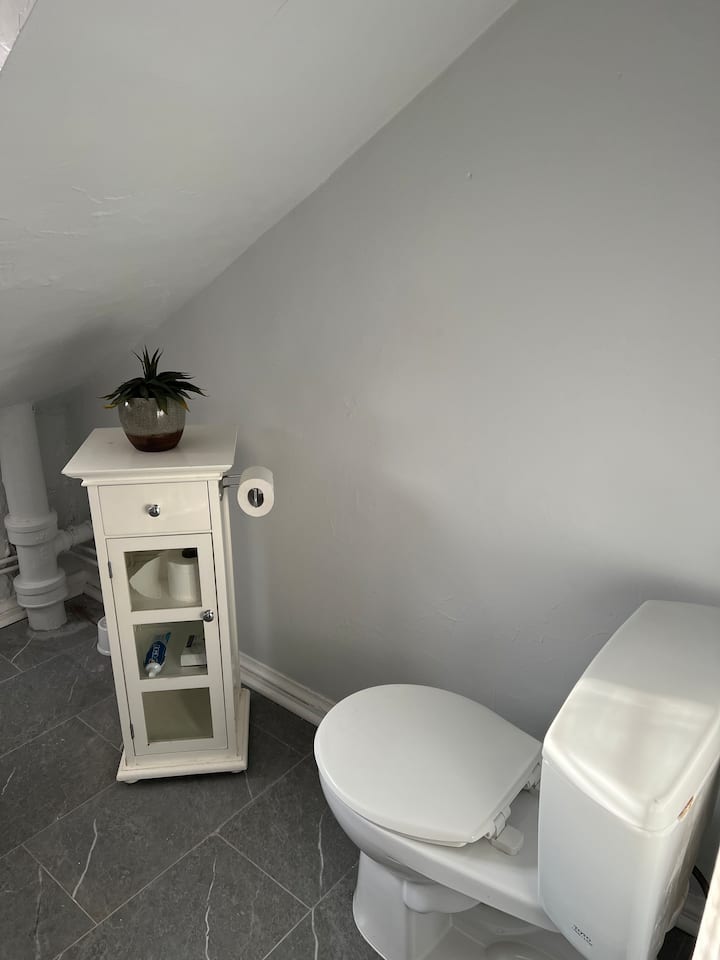 Inoltre, poiché questa è l'ultima unità, alcuni dei soffitti/pareti sono inclinati (come nella maggior parte delle mansarde), quindi non consiglierei questa unità a chi è più alto dell'adulto medio