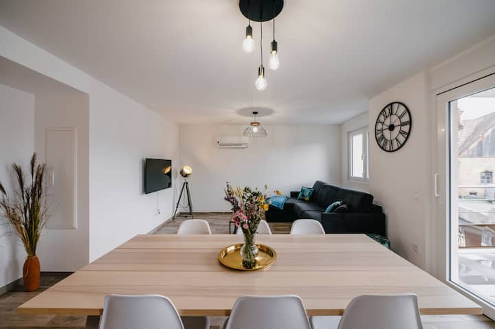 Ogni appartamento ha la sua particolarità. La cosa più difficile sarà scegliere quello in cui trascorrerete il vostro soggiorno più bello. Ci troviamo a Boofzheim, piccolo villaggio alsaziano vicino al confine tedesco, all'Europapark, alla Rulantica e a metà strada tra Strasburgo e Colmar.