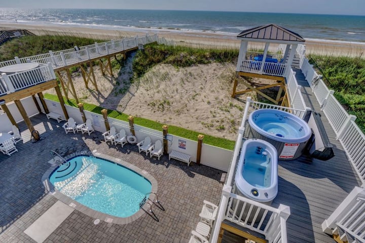 Respira l'aria fresca del mare e goditi la splendida vista sull'oceano da questa casa sulla spiaggia, che ti farà sentire come se fossi a casa tua. Questa casa a schiera di 3 piani offre tre lussuose camere da letto, 2,5 bagni, una cucina completa e un elegante soggiorno. Sguazza nella piscina e nelle vasche idromassaggio in comune o fai una breve passeggiata tra le dune per sentire la sabbia tra le dita dei piedi.