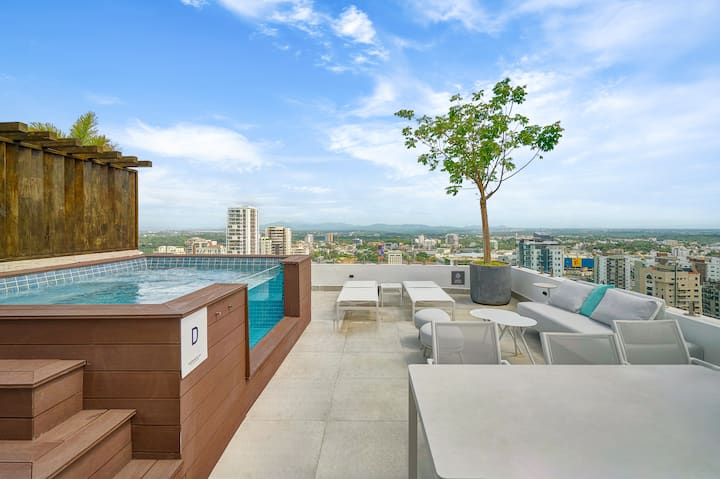 9Away in Piantini: Luxe 1BR, balcone, piscina panoramica