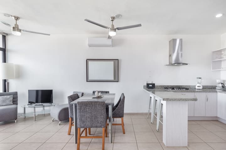 Bellissimo appartamento con 3 camere da letto, piscina e aria condizionata a Bambú Residencial