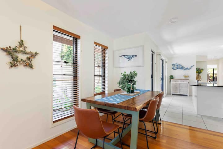 Little Whale House è un rifugio tropicale molto ben attrezzato, immerso nell'intatta gemma segreta di Mudjimba, nel cuore della Sunshine Coast. A soli 800 metri dalla bellissima spiaggia di sabbia dorata Mudjimba, una fuga ideale per chi desidera rilassarsi in questa oasi. Il villaggio di Mudjimba è un gioiello nascosto incontaminato che ha mantenuto un'atmosfera da spiaggia rilassata locale fuori dal trambusto, ma a soli 15 minuti di auto da Maroochydore, Cotton Tree, Coolum, Mooloolaba & Peregian e 30 minuti da Noosa ed Eumundi.