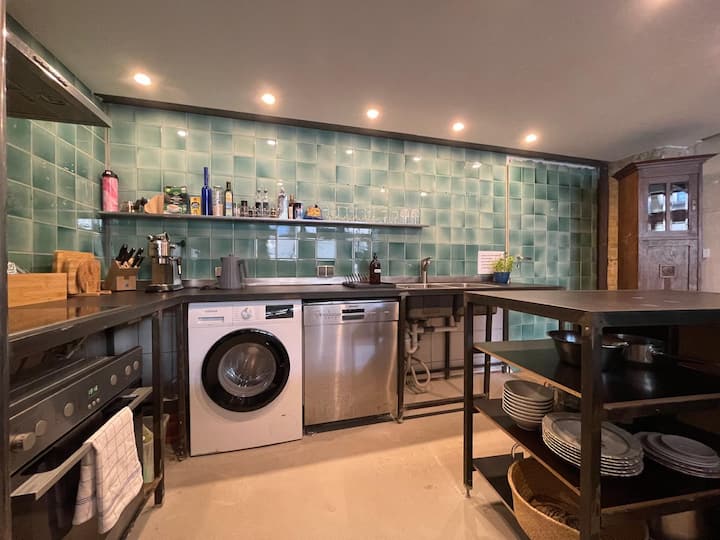 Benvenuti nel nostro affascinante appartamento recentemente inserito in una ex fabbrica di marmellate nel cuore di Berlino Kreuzberg, a due passi dalla Schlesisches Tor e nel centro della città! Questo alloggio unico al piano terra combina il fascino industriale con il comfort moderno e offre spazio sufficiente per un massimo di sei persone (+).