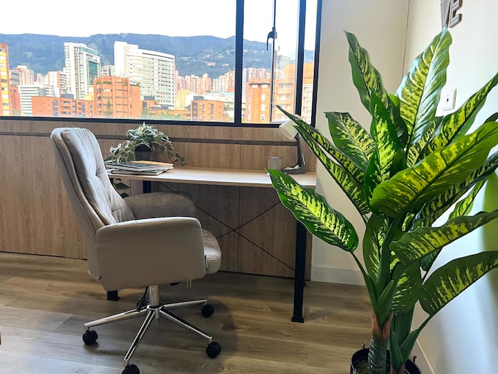Loft a El Poblado con vista/500MBwifi/Cowork/Gym