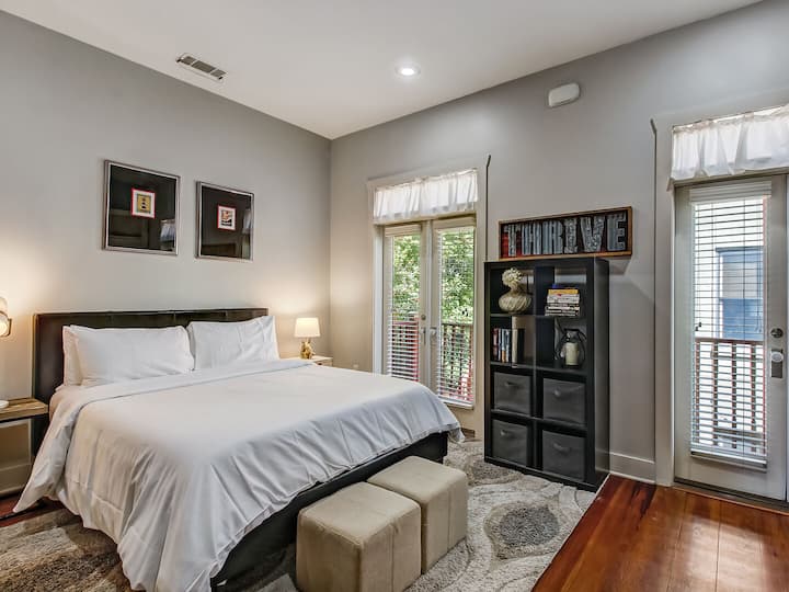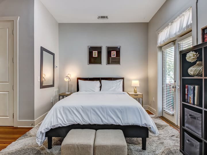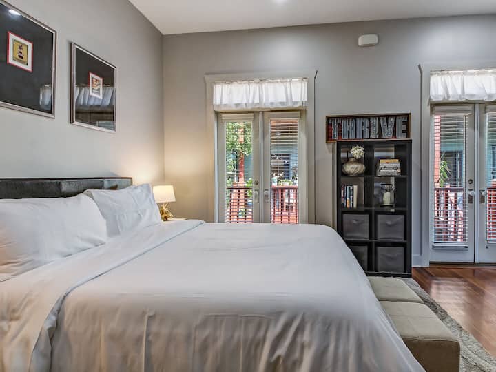 Quando vuoi un rifugio privato, Thrive on Perry è un'ottima opzione. Questo alloggio ha le dimensioni giuste per due persone. Puoi esplorare Savannah da solo o portare con te un amico o una persona cara. Lo spazio per dormire ha un letto matrimoniale con due comodini e lampade da lettura. Quando non dormi, puoi gustare un pasto insieme al tavolo da pranzo alto o rilassarti sul divanetto extra largo nel soggiorno.
