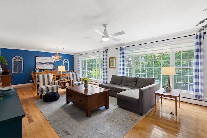 Rifugiati in questo tranquillo cottage per tutte le stagioni con 4 camere da letto sul bellissimo fiume Muskoka, situato in posizione perfetta con accesso diretto all'acqua a Peninsula, Mary e Fairy Lakes. Questo spazio accogliente ed elegante unisce il fascino rustico alle comodità moderne, ideale per famiglie, coppie o lavoratori a distanza che desiderano rilassarsi, riconnettersi ed esplorare la bellezza di Huntsville tutto l'anno.