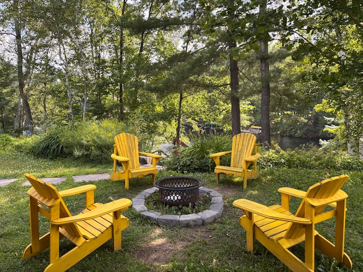 A soli 10 minuti dal centro in barca o in auto, sei a pochi minuti da sentieri, sci, degustazioni di sidro, il villaggio di Babbo Natale e vivaci colori autunnali. Bonus: puoi andare in kayak direttamente dal molo, arrostire s'mores vicino al braciere o rilassarti nella sala Muskoka con vista panoramica sul fiume.