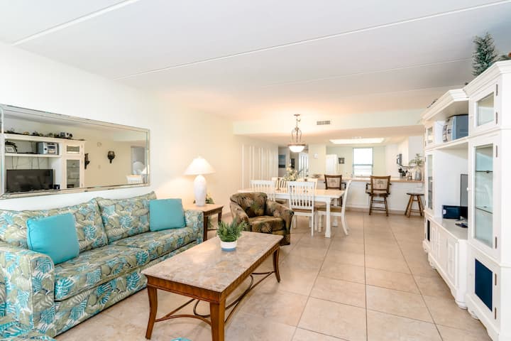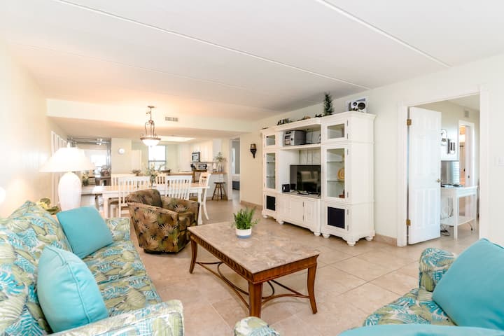 Benvenuti nella nostra casa vacanze alle Saida Towers. I morbidi posti a sedere sono ideali per rilassarsi e guardare un buon film sulla nostra TV a schermo piatto, dotata di TV via cavo. La zona giorno è perfetta anche per conversazioni con gli amici o per una divertente serata di giochi in famiglia. Il balcone fronte mare si trova appena fuori dal soggiorno. C'è un tavolo e sedie sul balcone, e puoi gustare qualche snack o un buon pasto mentre ti godi una splendida vista sulla spiaggia e sui servizi della Saida Tower. Nella nostra zona pranzo c'è un tavolo che può ospitare sei persone. Riunisci la famiglia intorno al tavolo per un buon pasto o da asporto da uno dei tanti ristoranti locali. La nostra cucina completamente attrezzata ha tutto il necessario per un pasto fatto in casa. Visita il negozio di alimentari locale, The Blue Marlin, e prepara il pasto preferito della tua famiglia. Dopo una lunga giornata in spiaggia e aver visitato le grandi attrazioni locali, torna indietro e fai la doccia in uno dei nostri 2 bagni. Poi tu e la famiglia potete addormentarvi in una delle due camere da letto. La camera da letto principale dispone di un letto matrimoniale grande, mentre la camera degli ospiti dispone di 2 letti matrimoniali. C'è anche un divano letto situato nella zona giorno. La nostra casa vacanze è il luogo perfetto per godersi una bella vacanza, vicino alla spiaggia.