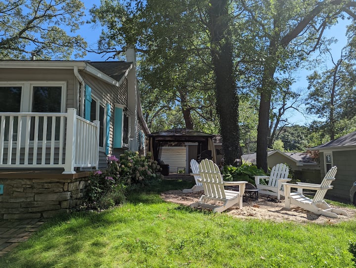 Bluegill Cottage è il tuo rifugio ideale per l'autunno in famiglia! Questo accogliente soggiorno con 3 camere da letto si trova a pochi passi da Spring Lake con kayak (disponibili stagionalmente), giubbotti di salvataggio e giocattoli da spiaggia per il divertimento. Interni: cucina completa, smart TV (Netflix, Prime Video, Hulu, Disney+ - accedi/esci con il tuo nome utente e password) e WiFi gratuito. All'aperto: cabana, freccette, braciere (disponibile stagionalmente) con s'mores e legna da ardere inclusa. Esplora il sentiero di 19 km, i frutteti, i campi di zucche e le viste sul faro di Grand Haven al tramonto.