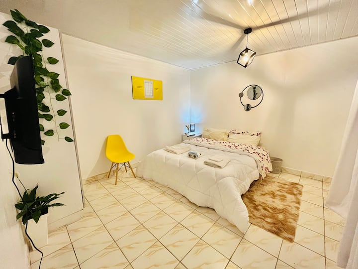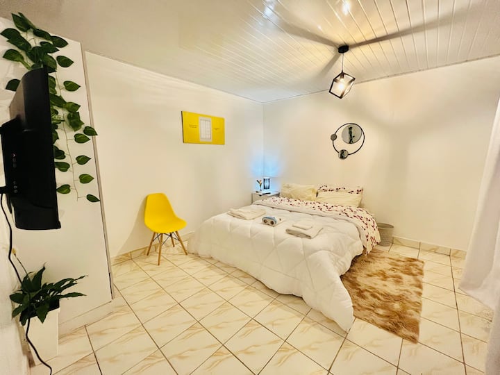 Camera con letto matrimoniale e bagno privato vicino all'aeroporto di Wilson