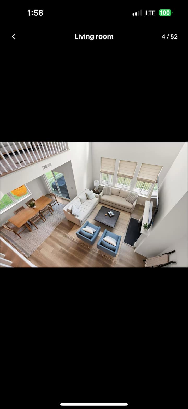 Il soggiorno offre otto posti a sedere sul nostro comodo divano ed eleganti poltrone. Una grande doppia finestra a due piani offre un'abbondante illuminazione naturale.