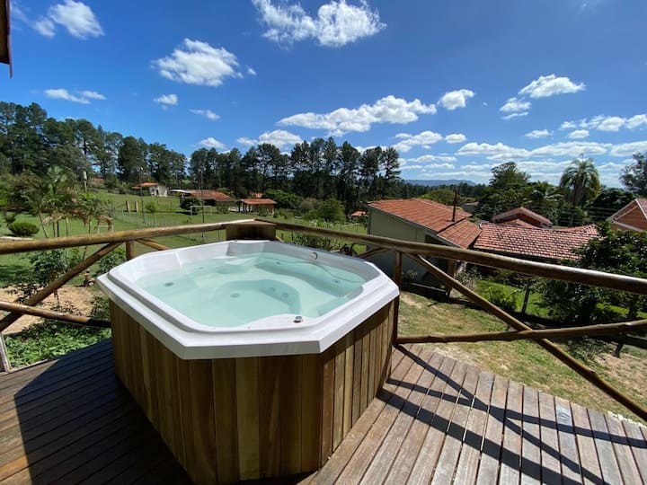 Chalet rustico nel bosco, jacuzzi A.Q., caminetto e aria