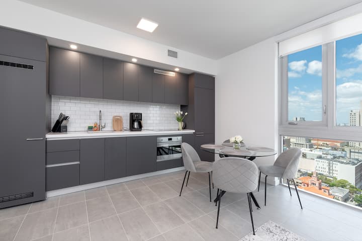 Vista città + 2 camere da letto al 30° piano + letti king size + parcheggio gratuito