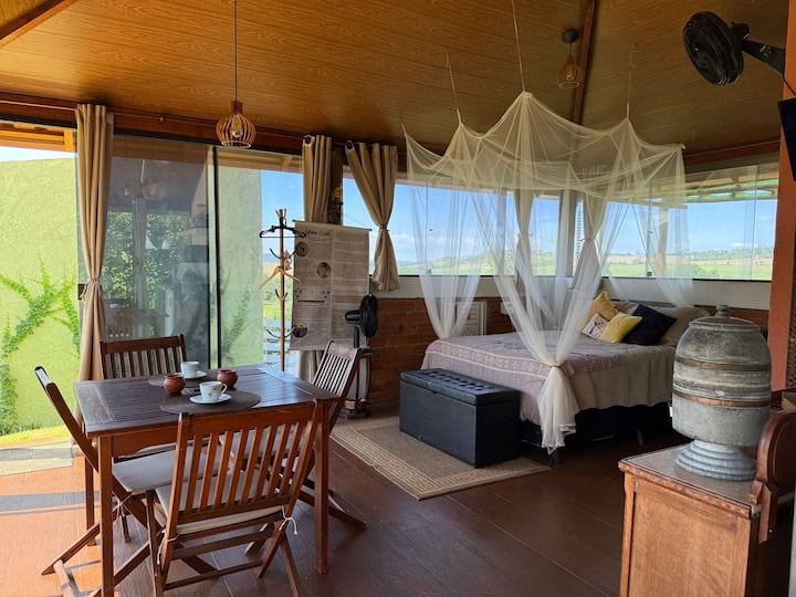 Scopri le bellezze di Minas Gerais e innamorati del Parco nazionale della Serra da Canastra. I cottage sono perfetti, hanno spazi privati... Lo chalet Maria Costa ha una terrazza in legno sul davanti, con una splendida vista, esclusiva per servire meglio gli ospiti e osservare il meraviglioso tramonto che la regione offre! Vivrete esperienze incredibili! L'alloggio è stupendo !