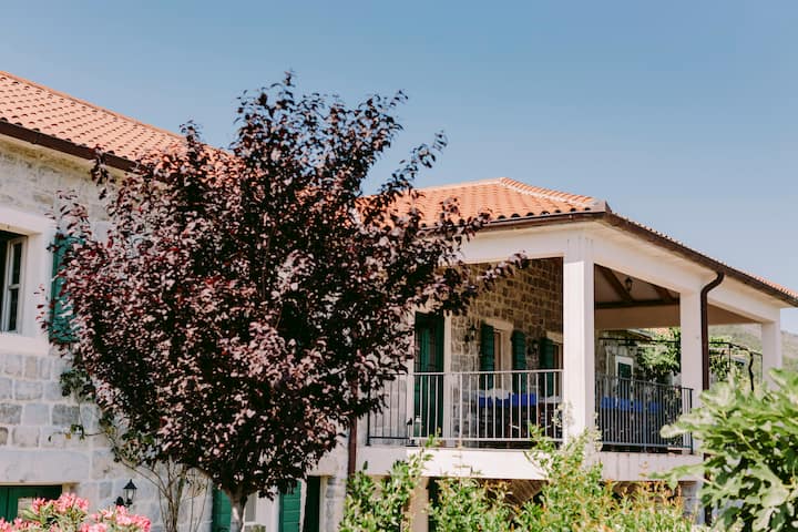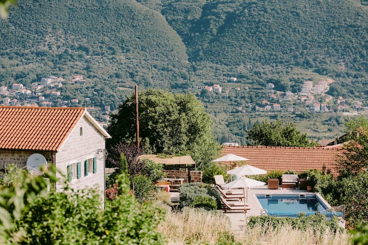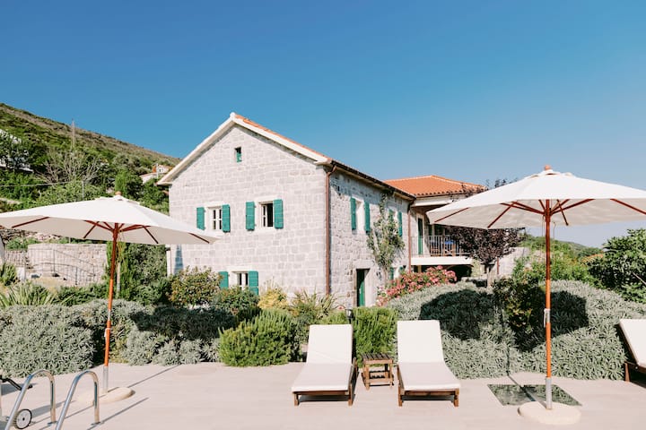 Questo alloggio storico risalente a 400 anni è stato completamente restaurato e modernizzato per fornire tutti i comfort della vita del XXI secolo, pur conservando tutto il fascino della sua lunga storia. Situata in cima alla penisola di Lustica, la villa gode di una spettacolare vista a 180 gradi sulla Baia di Kotor e sui monti Lovcen, ed è situata su una tranquilla collina circondata da uliveti, piccoli villaggi in pietra e villaggi di pescatori.