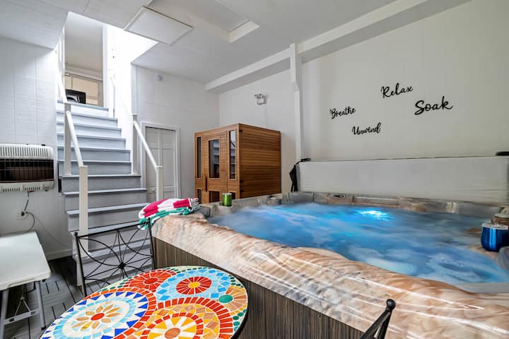 Entra in questa spaziosa casa su due livelli, dove gli interni aperti sono inondati di luce solare. Che tu ti stia rilassando nella tua vasca idromassaggio privata e nella sauna o sfidando gli amici nella sala giochi, questo è il rifugio perfetto dalla città.