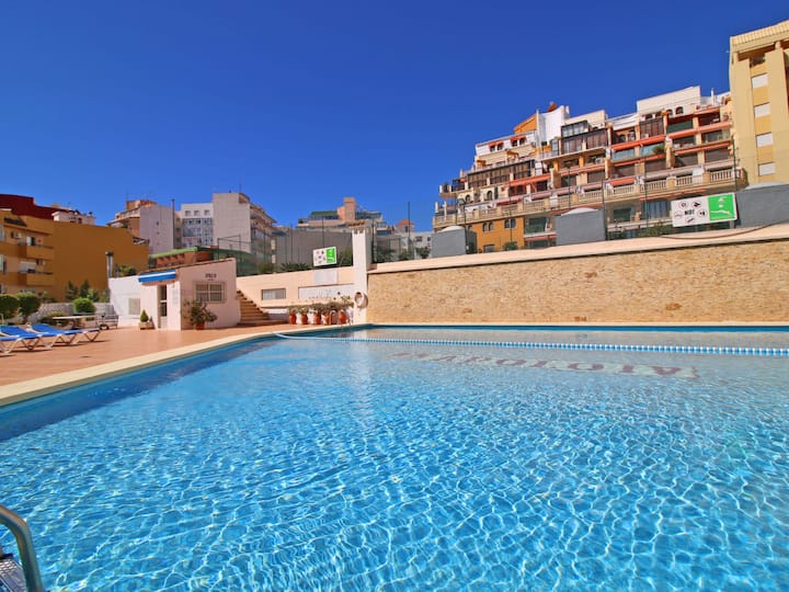Calpe: Condominio "Apolo IV", 7 piani. 3 appartamenti nel residence. In centro a Calpe, in posizione centrale, a 300 m dal mare, a 300 m dalla spiaggia. In comune: giardino, piscina (disponibilità stagionale: 01.Jan. - 31.Dec.). Doccia/WC in zona piscina, tennis, ping-pong. Nella casa: ascensore. Supermercato 300 m, centro commerciale 100 m, ristorante, bar, caffetteria 10 m, fermata bus 150 m, spiaggia sabbiosa "Playa del Arenal" 300 m. Porto sportivo a 2 km, scuola di surf a 2 km, scuola di vela a 2 km. Attrazioni nelle vicinanze: MundoMar, Aqualandia, Benidorm a 25 km, y Terra Mitica a 35 km. Sentieri escursionistici: Peñon de Ifach 3 km. Nota bene: adatto a famiglie, attrezzature per bambini su richiesta (extra). È possibile prenotare alloggi aggiuntivi.