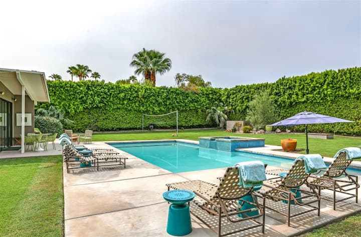 Questa meravigliosa casa vacanze è stata reinventata con cura evocando il glamour, lo stile, il divertimento e la raffinatezza dello stile di vita di Rancho Mirage. Questa casa vacanze squisitamente arredata e ben arredata offre servizi in stile resort su un terreno di 16.988 piedi quadrati, offrendo una privacy impareggiabile e una vista mozzafiato sulle montagne.
