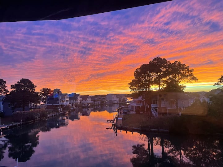Mentre ti avvicini alla proprietà, preparati a rimanere incantato dalla vista di cui godrai durante il tuo soggiorno. Ogni stanza della casa ha una vista sull'acqua! La casa è direttamente sul lungomare con un molo su un canale navigabile fino alla baia di Chincoteague. Porta la tua barca o la tua moto d'acqua e salta su e giù con facilità dal cortile. La struttura vanta due livelli di terrazze avvolgenti. Questo alloggio è il rifugio perfetto lontano dalla folla. Goditi la calma nebbia mattutina e vivi il tramonto magico. Goditi un buon libro, medita o sorseggia un cocktail mentre ti godi questi splendidi dintorni.