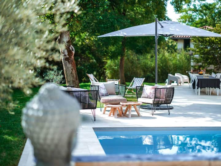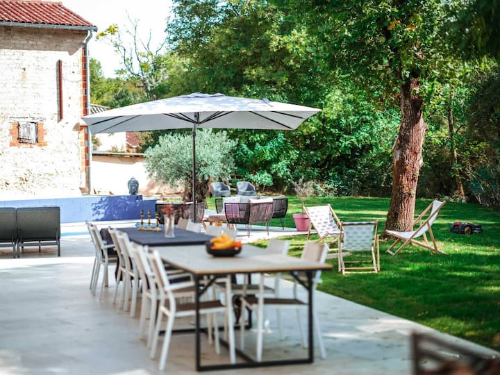 Disabitata da 30 anni, senza acqua, senza elettricità, questo vecchio casale completamente ristrutturato con raffinate decorazioni ti dà il benvenuto a vivere un momento d'amore con la famiglia o con gli amici in questo luogo unendo eccezione e semplicità. Tanti spazi, attrezzature di altissima qualità come biancheria da letto e morbida biancheria da letto immacolata, altoparlanti da esterno per godersi a pieno la musica della piscina e le sue meravigliose comode sdraio. Inoltre, la casa è completamente climatizzata.