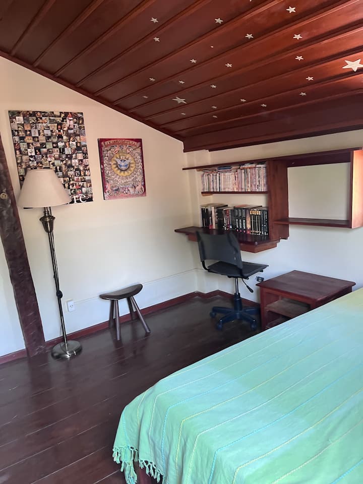 Disponiamo di 3 alloggi in affitto, uno si trova in un Sitio situato a 5 km dal centro storico, con una sorgente d'acqua naturale che bagna la piscina (piscina condivisa), parcheggio, area verde, vicino alle migliori cascate come la Giamaica e lo slittino. 1 casetta che si trova nel retro del mio cortile. E l'altra sarebbero 2 camere da letto che si trovano all'interno della nostra residenza al piano di sopra. Mi chiamo Luiz Claudio, sono sposato con Flora e abbiamo tre figlie.