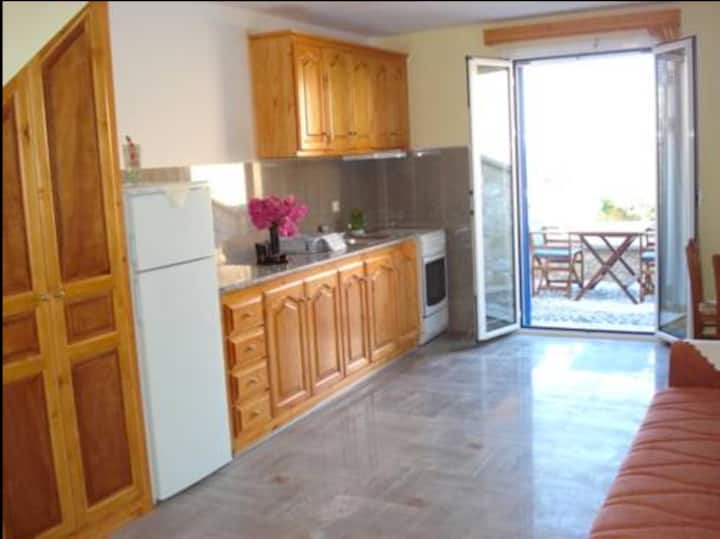 Appartamento con giardino per 4 persone, spiaggia di Karterados