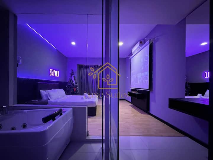Casa privata con vasca idromassaggio e bagno al neon con bomba da bagno GRATUITA