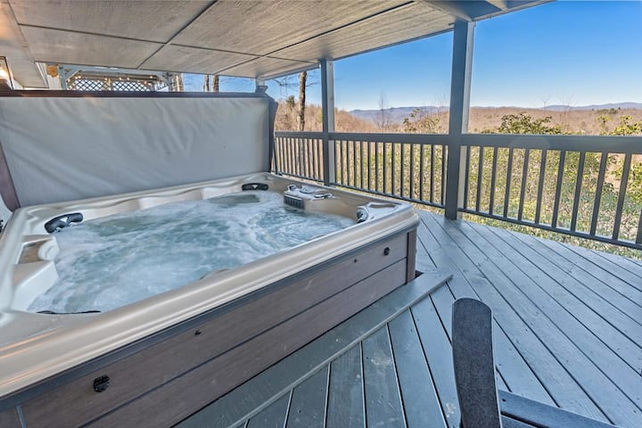L'area esterna di questa casa vanta splendide viste e una privacy senza pari. Con 3 terrazze, offre panorami e relax in abbondanza. Sorseggia il tuo vino sul ponte superiore, il tuo caffè su quello centrale e immergiti nella vasca idromassaggio per 8 persone su quello inferiore! Mentre sei nella vasca idromassaggio, puoi guardare una partita, il tuo film preferito o un programma TV utilizzando il nostro nuovissimo proiettore e schermo per film all'aperto! Una pittoresca area salotto e una griglia per barbecue si trovano sul ponte inferiore. Gli ospiti hanno anche accesso ai servizi e alle attività che la comunità recintata di Connestee Falls ha da offrire, come parchi per bambini, pesca, canoa, nuoto, golf, pickleball, escursionismo e tennis.