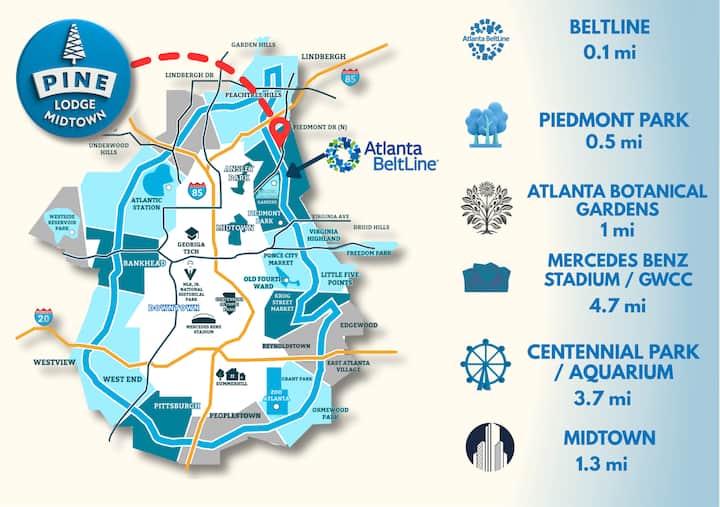 ✔ Atlanta BeltLine: fai una passeggiata o noleggia una bicicletta lungo la vicina Atlanta BeltLine, un ex corridoio ferroviario trasformato in un sentiero urbano. È un ottimo modo per esplorare diversi quartieri, installazioni di arte pubblica e attrazioni locali.