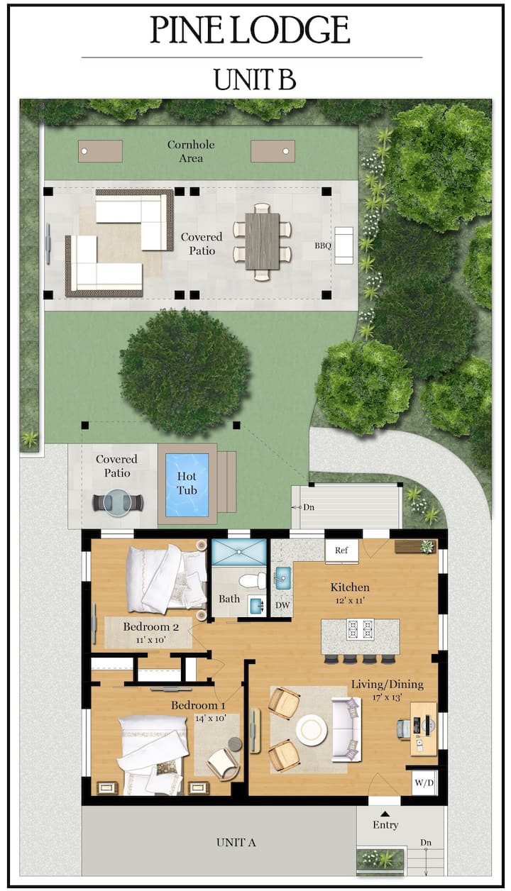 Moderno duplex di lusso con servizi a 5 stelle e un'oasi all'aperto da SOGNO con oltre 56 metri quadrati di patio esterno coperto con vasca idromassaggio di lusso per 7 persone, (2) TV da esterno da 50", zona pranzo e soggiorno. Le aree esterne sono PRIVATE per la tua unità.
