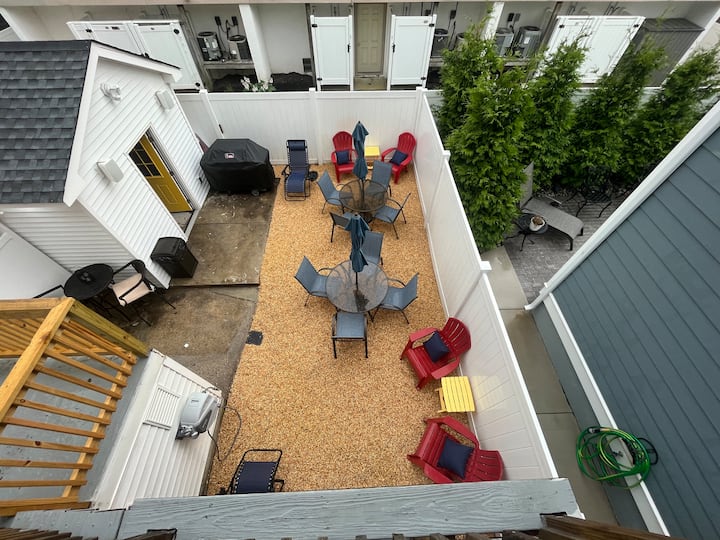 Avrai accesso condiviso al capanno. Questo ha una serratura digitale e il codice sarà fornito. Il capanno contiene circa 15 sedie a sdraio, 4 carrelli da spiaggia, 8 ombrelloni, 3 teli mare, 3 frigoriferi portatili, 10 tavole da bodyboard, 2 radio Bluetooth e vari giocattoli da spiaggia e giochi all'aperto. Ci sono varie biciclette con caschi e lucchetti e sedie/tavoli extra che possono essere utilizzati. È presente un frigorifero con congelatore e macchina per il ghiaccio, a tua disposizione e rifornito di impacchi di ghiaccio e condimenti. C'è anche una Smart TV da 42" con Fire Stick e ventilatore, nel caso in cui tu voglia trascorrere del tempo all'interno o intorno al capanno.