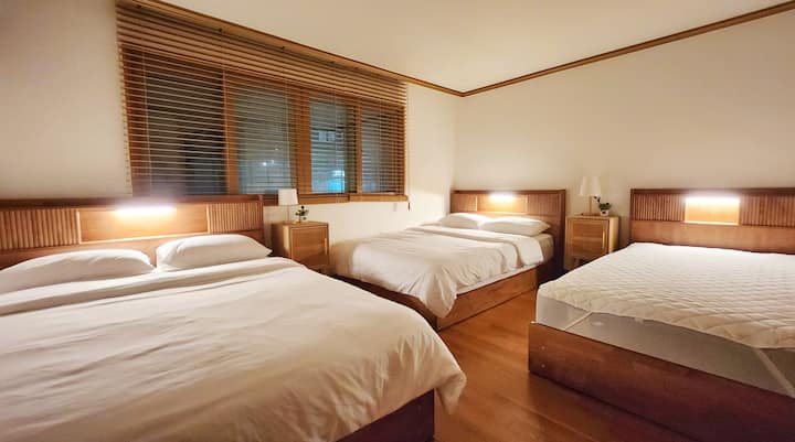[Certificazione ufficiale del governo] Grande famiglia di 13 persone / Laboratorio / Beauty | Via dei caffè / Ristoranti di Hapjeong | Hongdae | 4 camere / 2 bagni!