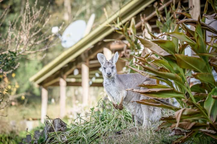 La casa e i giardini sono esclusivamente tuoi durante il tuo soggiorno, ma puoi anche passeggiare tra i 50 acri di bellezza naturale incontaminata della struttura. Dal pascolo al fondovalle, alle enormi rocce, alle scogliere e alla boscaglia vergine, c'è un'enorme varietà di ares da esplorare e meravigliarsi della nostra flora e fauna. Il sogno di un osservatore di uccelli, abbiamo registrato oltre 80 specie distinte di uccelli (e fotografato la maggior parte di loro!). Dalle aquile dalla coda a cuneo e dai cacatua neri lucidi che svettano sopra la testa, agli scriccioli da favola e agli uccelli frusta che sfrecciano attraverso il sottobosco, ovunque ti giri, c'è qualcosa da vedere! I paddock e le colline ospitano sia i canguri grigi orientali che i wallaby della palude, senza parlare dei numerosi vombati. Guarda gli alberi di notte e troverai alianti, opossum e, per quelli di voi abbastanza fortunati da individuarli, i koala! Assicurati di farci sapere cosa trovi: lavoriamo anche in collaborazione con gli accompagnatori locali della fauna selvatica per monitorare e trattare i nostri amici nativi, se necessario.