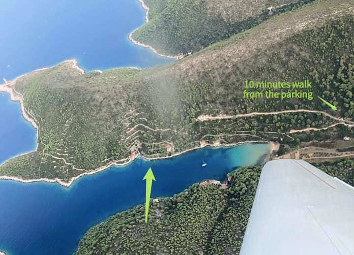 L'accesso alla casa è possibile via mare o via terra. Un piccolo sentiero per le capre conduce dal parcheggio alla casa e ci vogliono 10-15 minuti a piedi per raggiungere la casa dall'auto. I bagagli (acqua potabile, cibo...) devono essere trasportati a mano. Ti consigliamo di portare diverse piccole borse da viaggio anziché una grande valigia, poiché il percorso che conduce alla casa è stretto e ripido in alcune parti. Non è consentito andare in bicicletta sul sentiero.